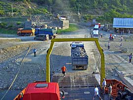 | Von Hafen aus geht es durch einen unbeleuchteten Tunnel, dann wird die Strecke abwechslungsreicher, teils auf Schotter, teils auf Teerstrasse fahren wir am Stausee entlang. |
