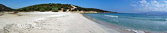 | Auf dieser Strecke gibt es meistens eine leichte Sandpiste, zu Beginn kommen wir an einer Pferdefarm vorbei, dann geht es weiter bis wir an einen kleinen See kommen, hier grasen die Kühe. Weiter geht es bis zu einer Abzweigung wo wir zuerst rechts, dann links abbiegen bis wir an den Traumstrand von Korsika kommen. Dieser ist fast nur mit dem Schiff zu erreichen. |