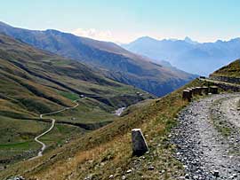 Diese Stichstrasse zum Monte Belino kennt man kaum, wer die Varaita und Maira fährt kann hierhin einen Abstecher machen. Von der Hauptstrasse geht rechts eine Strasse den Berg hoch, nach einiger Zeit wird es geschottert. Man kommt vorbei an einem Bach und fährt das Tal entlang. Mehrere Wege zweigen hier oben ab und man sollte versuchen die Strecke Richtung Kapelle zu erwischen, denn die anderen enden als Sackgasse. Weiter oben kommt eine Schranke die aber bis jetzt immer offen gestanden hatte. Der Weg schlängelt sich hoch vorbei neugierigen Kühen bis man oben am Plateau ankommt. Die Luft auf ist hier oben auf über 2800 Meter sehr dünn.