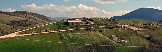 Wir erreichen eine Teerstrasse, die uns einige Kilometer in die Berge bringt, bevor wir wieder auf eine breite Schotterstrasse treffen. Dieses bringt uns serpentinenartig auf ca. 1200 Meter wo sich die erste Passhöhe befindet. Weiter geht es durch ein kleines Tal, an einem Aussiedlerhof biegen wir nach links in eine weitere Schotterstrecke ab. |