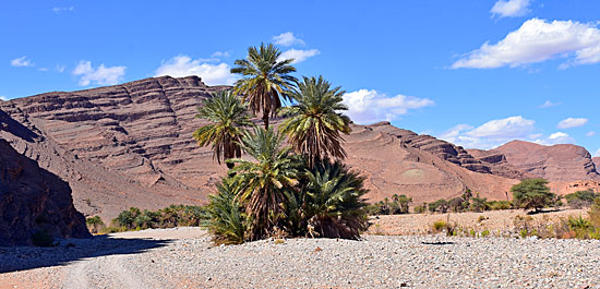 | Zu Beginn folgt man den Verlauf durch einen Palmenhain und an paar Nomadenzelte vorbei. |