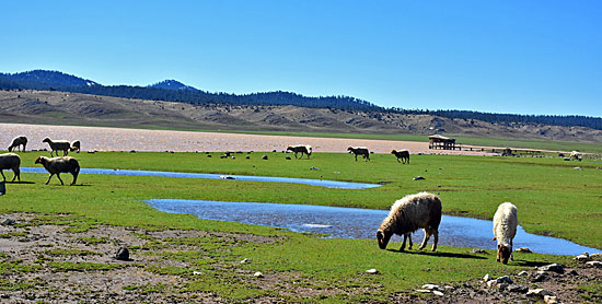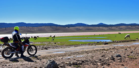 | Zwischen Seen, entlang grünen saftigen Wiesen steigt die Offroadroute zum Zedernwald hoch. |