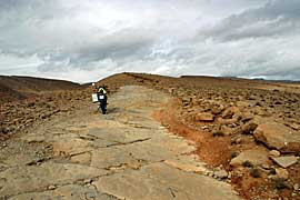 Eine anspruchsvolle Verbindungsstrecke zwischen Todra und Dades. Felsplatten und ein ausgetrocknetes Flussbett mus überquert werden.