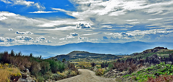 Eine breite Piste von der man Abstecher zu Dolmen und Picknickplätze unternehmen kann. Im zweiten Teil ist die Fahrbahn stellenweise tiefer geschottert und ein Spur breit. |