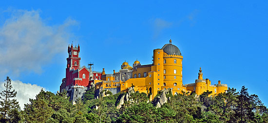 | Das sollte man gesehen haben! Besucherandrang jederzeit vorhanden, die Touristen kommen mit den Busse aus Lissabon. Das Schloß, ein zweites Neuschwanstein, diesmal in Portugal. In der Nähe befindet sich noch das Nationalschloss, eine maurische Burg und ein einzigartig schöner Park mit viele exotische Bäume und Pflanzen. |