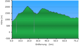 ca. 75 KM Schwierigkeit: 90% Schotterstrasse Max Höhe: