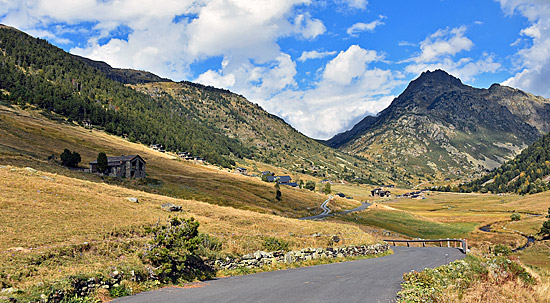 | Schmucke Ferienhäuser säumen die Teerstraße in Richtung Tal. Kehr- und kurvenreich fährt man zu einem Bergdorf hinab. |