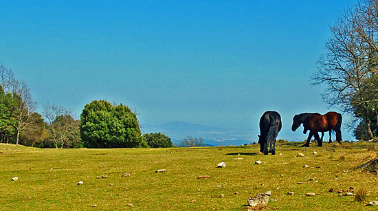 | Der erste Pistenabschnitt ist gepflegt mit wenigen Ausnahmen wo es steiniger werden kann. Man fährt bergauf und -ab am Hang, im Freien und genoeßt weite Aussichten. |