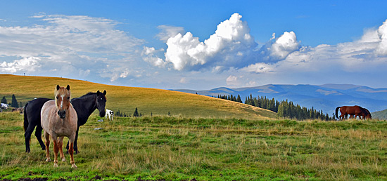 | Heute wird es ländlich mit viel Natur. Wir durchfahren kleine Dörfer, kommen über eine geschotterte Bergkette mit viel Weiden. |