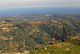 | Als sich unsere Augen satt gesehen haben gehts die Schotterstrasse weiter. Um den ganzen Berg führt dieser Weg, vorbei an Kühen zieht sich die Strasse langsam wieder Talabwärts. Das schöne daran ist, man hat immer den Panoramablick hinunter ins Tal. Von der Radarstation genießt man einen herrlichen Blick bis ans ca. 15 Kilometer entfernte Meer. | ![]() |