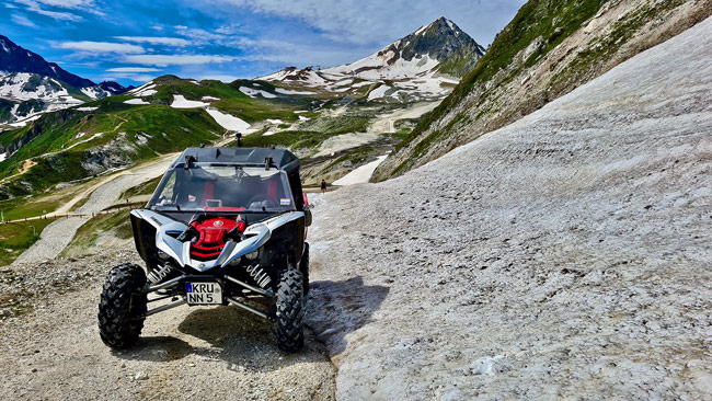 | Routenbeschreibung Ein Hochgebirge dass mit Offroadpisten lockt. Der Untergrund weist die gesamte Bandbreite einer ungeteerten Oberfläche auf: von staubigen Feldweg bis tief geschottert mit niedrigen Felstreppen. In höheren Lagen kann man auch mit Restschnee rechnen. Gondelstationen locken, Hänge mit Alpenrosen. |