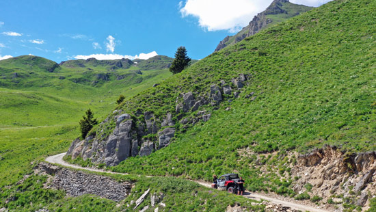| Abschnitt zwischen den Abstechern, Passage die man meint auf der Assietta Kammstraße (Seealpen Piemont) wiederzufinden. Der Untergrund ist festgefahren, ab und zu ein Regenloch bremst ein. |