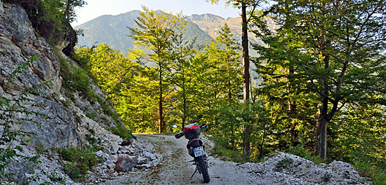 | Ca. in die Mitte der Route durchfährt man eine liebliche Lichtung und genießt einen super Ausblick auf die Kamniker Savinjer Alpen |