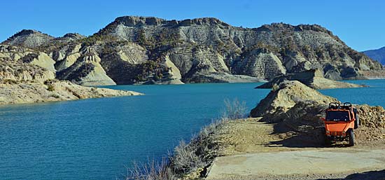 | Die Tour ist 19 Kilometer lang und führt im ersten Abschnitt an mehrere Ramblas vorbei. Der zweite Stich führt direkt zu dem Ufer des Stausees hinab. Die Fahrbahn führt bergauf und ab und weist ein paar tiefer geschotterte Abschnitte auf. |