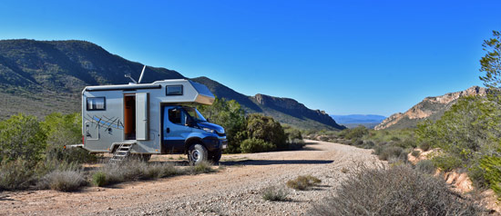| Ein paar Kilometer weiter erreicht man einen Picknickplatz mit einer „Aussichtsbank“ neben einer „Garage“. Top! Im Blickfeld nach rechts sieht man einen zweiten Picknickplatz mit Aussicht, den man nach 150 m erreicht. Man sieht den Verlauf des Weges im Tal. |