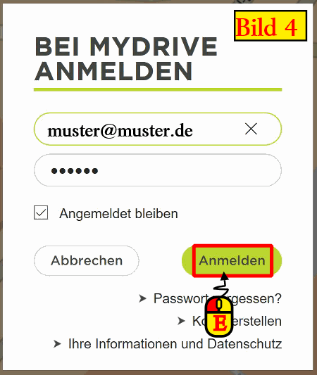Es erscheint die Anmeldemaske (Bild 2) . > wenn man ein Neuer Benutzer ist, muss man zuerst ein Konto erstellen (registrieren) ( B ); > wenn man sich schon registriert hat, muss man sich nur noch mit der E-Mail Adresse und dem Passwort anmelden ( C ). |