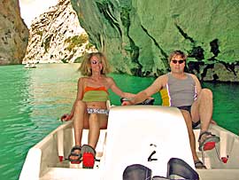 Am See angekommen kann man die Badesachen auspacken und baden oder man mietet sich ein Boot und schippert einige Kilmeter in die Schlucht. Im Sommer sind wir hier wahrlich nicht allein, etliche Boote sind um uns herum. Wieder zurück am Motorrad gehts nun auf der anderen Seite weiter wieder zurück durch die Schlucht. Teileise steigt die Strecke einige 100 Meter an, immer wieder hat man kleine Parkbuchten mit herrlichen Ausblicken auf die Schlucht. Verdon_d.jpg