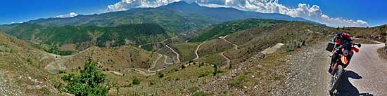 Then we also have our first and only defect on our motorcycle, the porters is broken, so taken 2 pegs of our unused tent as rails and secured with a tape strip. 2 locals come and see us there. They can not understand what we are looking for as a tourist here, because Tirana would be much better than this lonely place for us. |